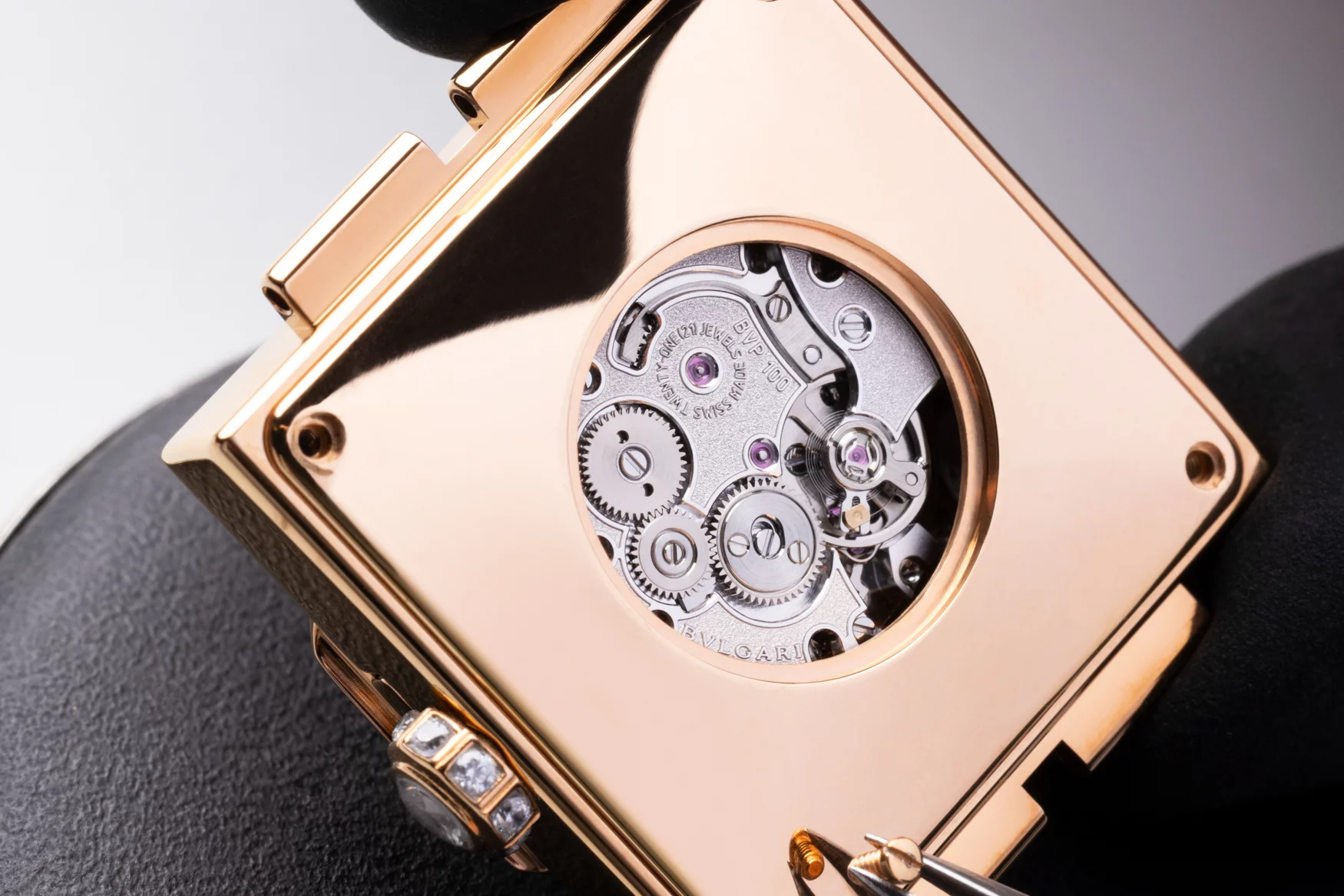 The timepiece is powered by Bulgari’s Piccolissimo BVP100 calibre, introduced in 2022 and described by the brand as the smallest round mechanical movement in production. The hand-wound movement operates at 21,600 vibrations per hour and provides a power reserve of approximately 30 hours. For this version, Bulgari has introduced crown winding and a sapphire caseback, allowing visibility of the movement.