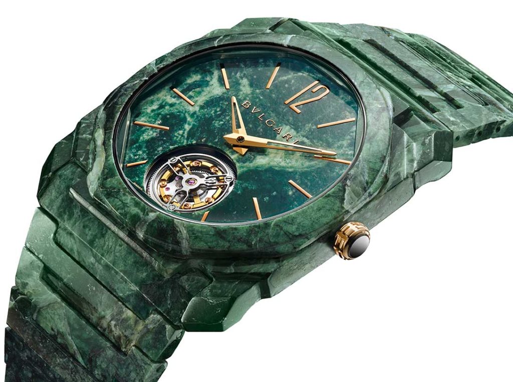 Continuing the theme of artistic materials, Bulgari unveiled the Octo Finissimo Marble Tourbillon. This 40mm extra-thin platinum timepiece is a true masterpiece of material innovation and horological finesse. Its dial is meticulously carved from deep-blue Italian marble, a material forever entwined with the grandeur and emotional power of Roman culture.