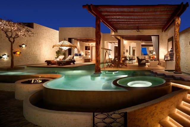 - Private beach cabanas with plunge pools and stocked minibars
