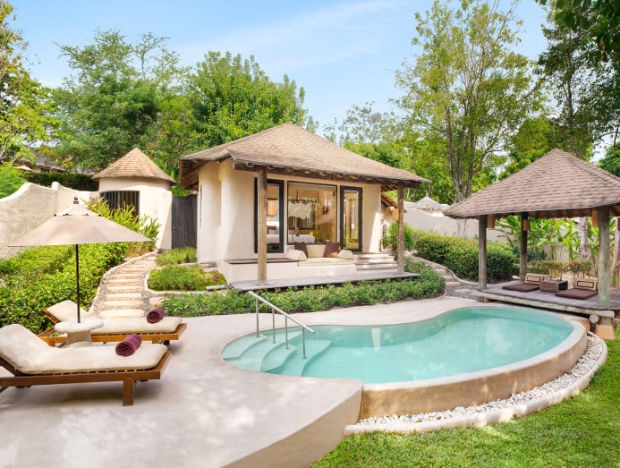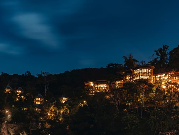 Keemala, the villa above Kamala, offers a fully immersive storytelling experience across four villa styles inspired by imaginary ancient Phuket families. The Tree Pool Houses, Birds Nest Villa, Tent Pool Villa, and Clay Pool Cottages are houses, each with its own distinct way of demonstrating the life of a tribe. The resort was designed by Architect Space, and its interiors were by Pisud Design, which used natural materials, Thai craftsmanship, murals by Surachai Sripaiboon, and textiles from the Doi Tung Development Project.