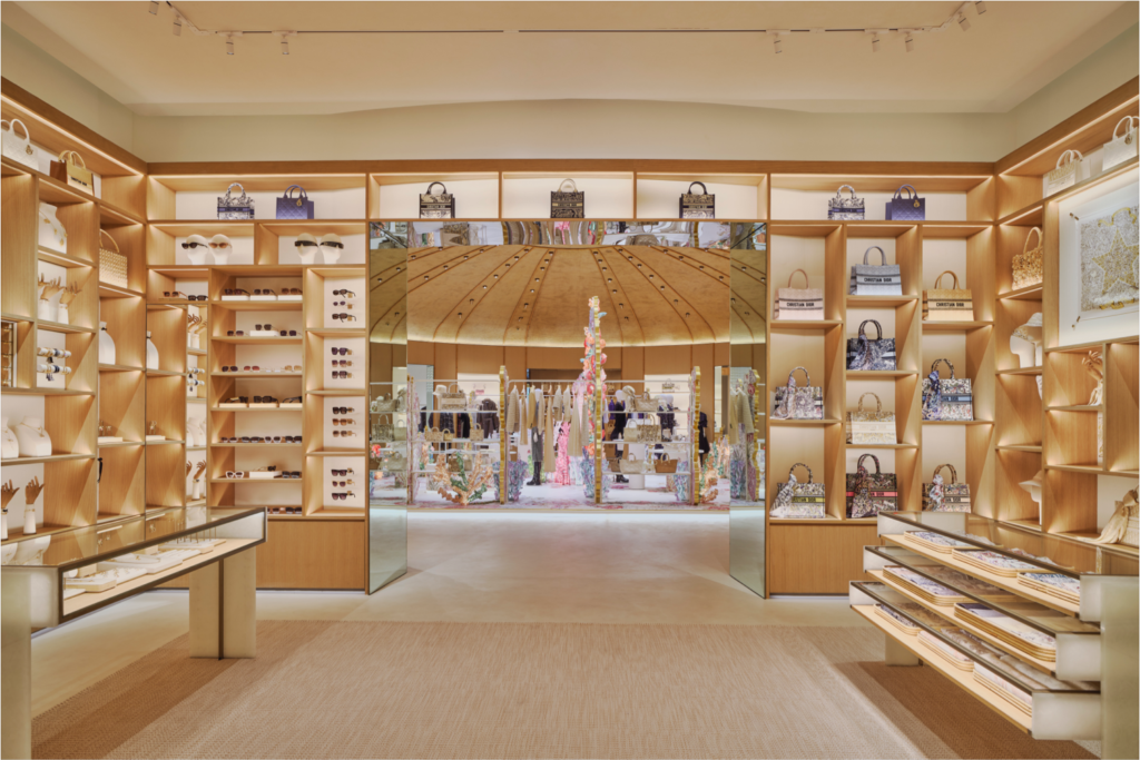 Inside, the Gold House is an immersive journey through the world of Dior. It showcases the latest seasonal fashion collections, including ready-to-wear, accessories, and men’s fashion curated by creative directors Maria Grazia Chiuri and Kim Jones. The store also features exclusive installations by both Thai and international artists, weaving a narrative that blends fashion with themes of culture and environmental awareness.