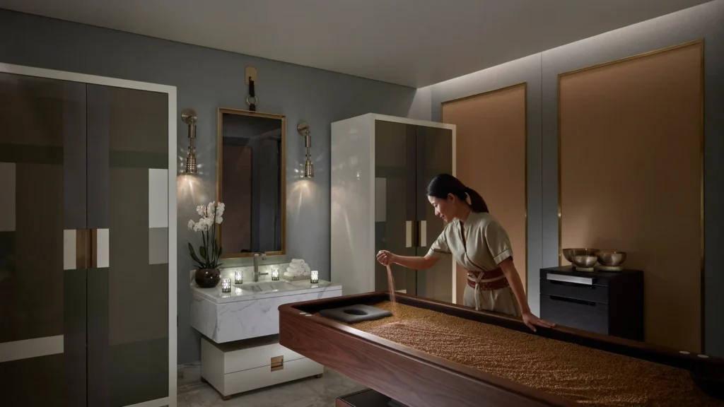 Mandarin Oriental’s visual language is marked by subtle oriental motifs—fans, silk textures, and refined earth tones—that create an atmosphere of peaceful elegance. Spas are integral to the experience, offering holistic therapies that draw from centuries of wellness practices. The brand has long been ahead of the wellness curve, integrating meditation, movement, and mindfulness into its core offerings.